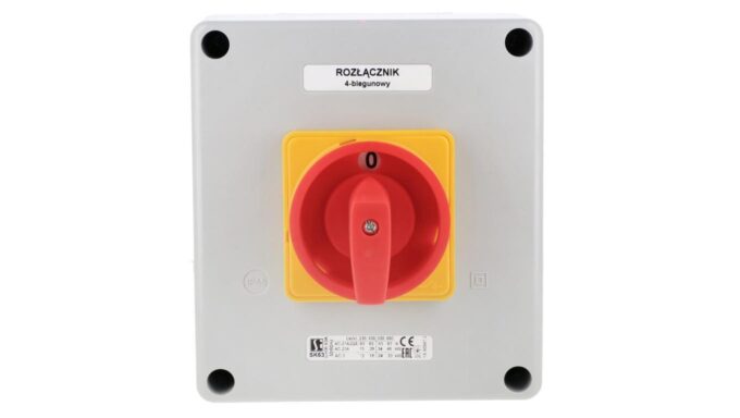 Łącznik krzywkowy 63A rozłącznik 0-1 (4 – biegunowy)w obudowie OB16 z czołem zamykanym żółto/czerwonym SK63-2.8210OB16ZC