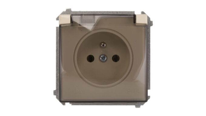 Simon Basic Gniazdo bryzgoszczelne z/u IP44 z klapką dymną beżowe BMGZ1B.01/12a